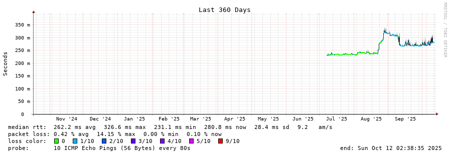 6 > 66.110.59.130 (66.110.59.130) [AS6453] 268.285ms 268.351ms 267.821ms