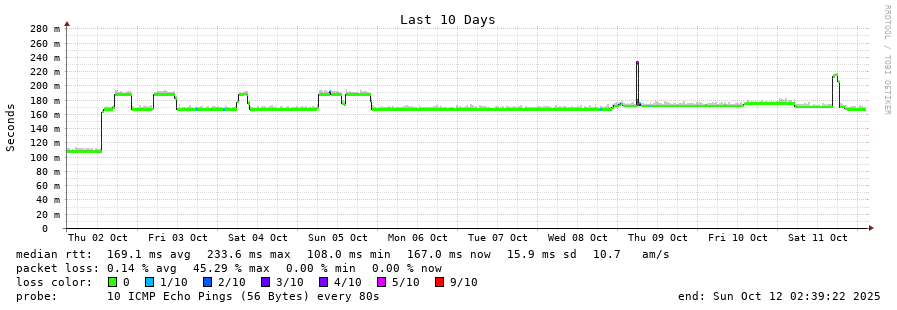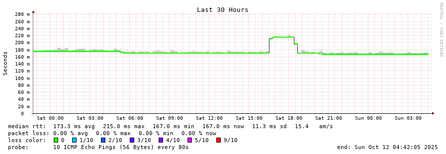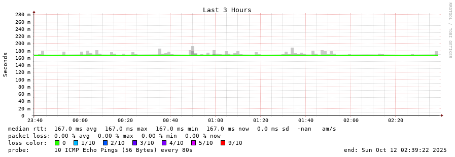 11 > tky001bb01.IIJ.Net (58.138.88.85) [AS2497] 167.290ms 167.174ms 167.146ms