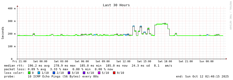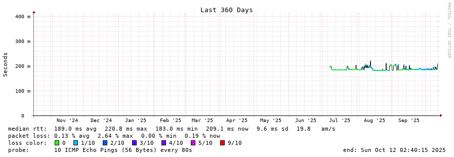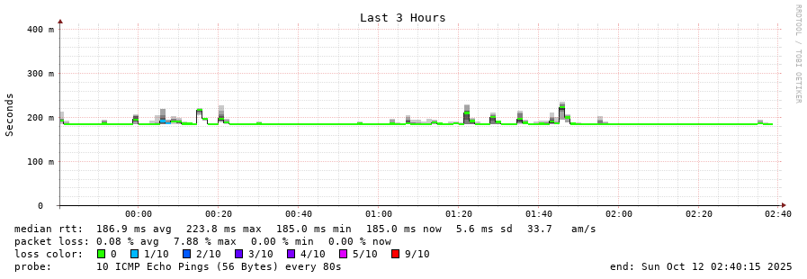 12 > unknown.telstraglobal.net (210.176.138.174) [AS4637] 189.867ms 190.049ms 189.885ms