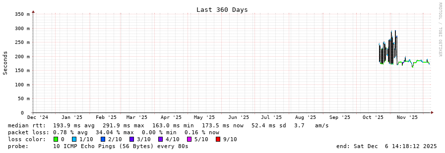 10 > 195.22.192.25 (195.22.192.25) [AS6762] 177.400ms 175.049ms 175.838ms