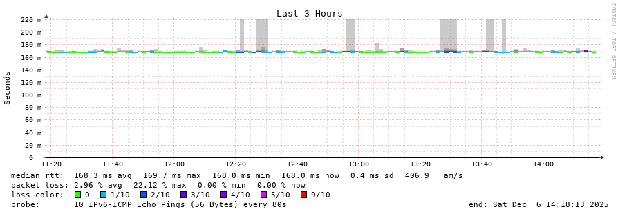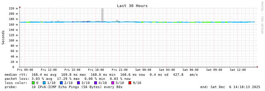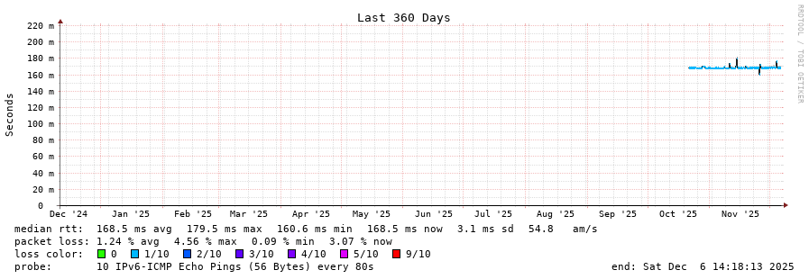 traceroute to 2c0f:5400:2:15::1 (2c0f:5400:2:15::1), 30 hops max, 80 byte packets - Generated at 2025-12-06 14:00:01