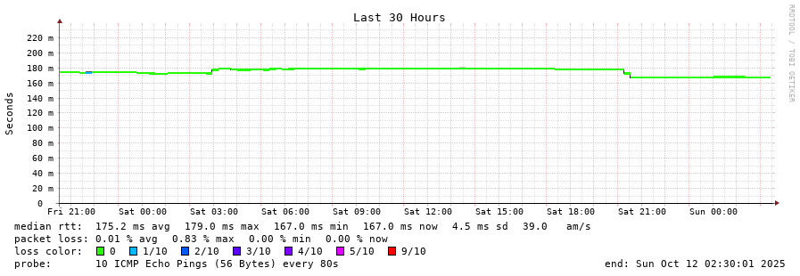 14 > 83.169.204.81 (83.169.204.81) [AS31133] 168.581ms 168.579ms 168.579ms