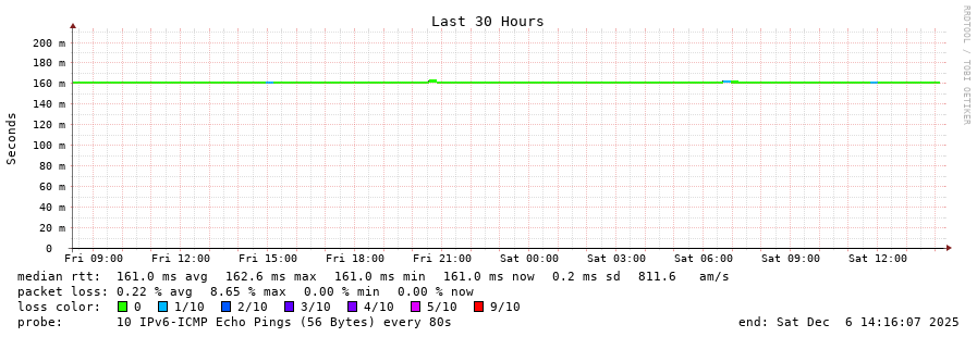 traceroute to 2001:b68:d:0:ee08:6bff:fe73:2da0 (2001:b68:d:0:ee08:6bff:fe73:2da0), 30 hops max, 80 byte packets - Generated at 2025-12-06 14:00:01