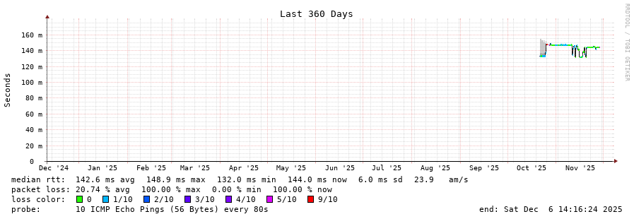 traceroute to 44.32.77.3 (44.32.77.3), 30 hops max, 60 byte packets - Generated at 2025-12-06 14:00:01