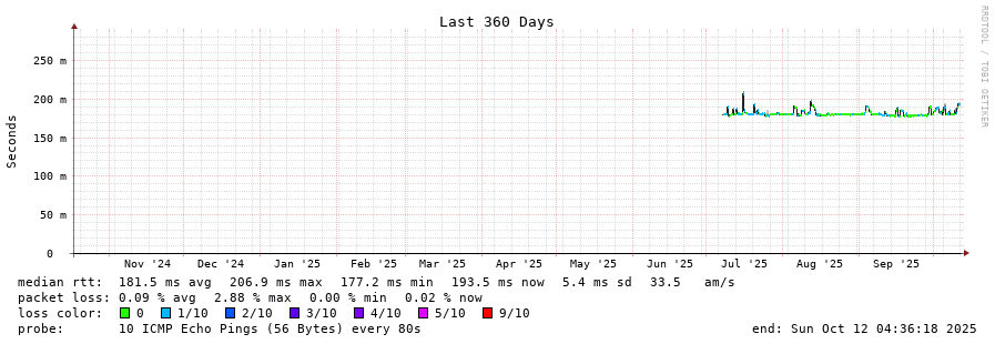 25 > 62.112.98.145 (62.112.98.145) [AS25513] 180.004ms 179.978ms 180.050ms