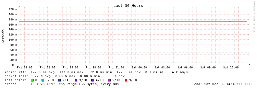 traceroute to 2a04:9dc0:0:a51::afaf:1 (2a04:9dc0:0:a51::afaf:1), 30 hops max, 80 byte packets - Generated at 2025-12-06 14:00:01