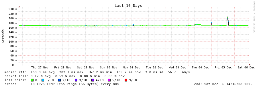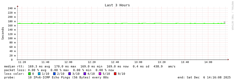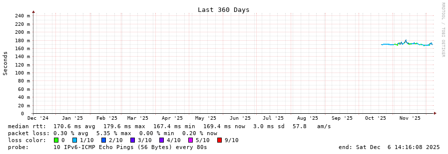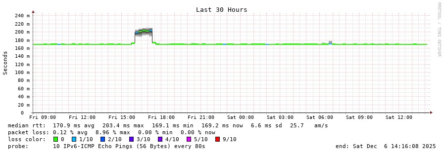 traceroute to 2a0b:2f00:0:234::151 (2a0b:2f00:0:234::151), 30 hops max, 80 byte packets - Generated at 2025-12-06 14:15:01