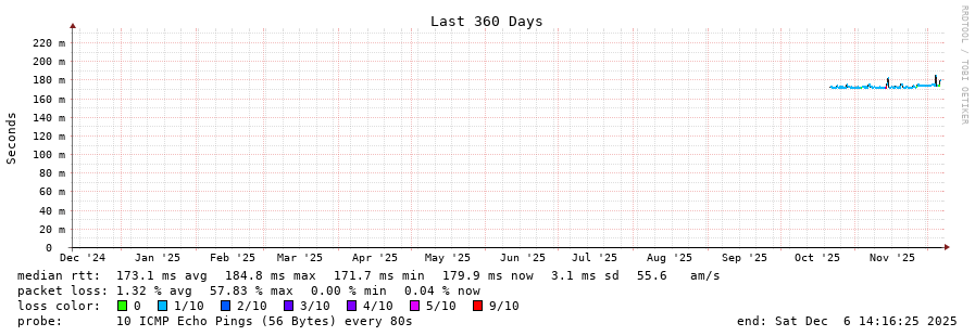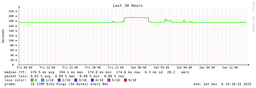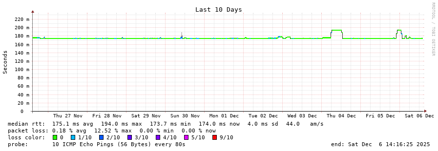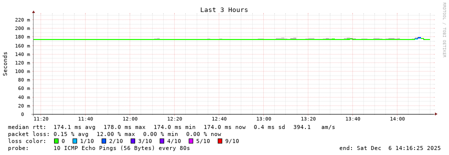 12 > de-cix.v4.telecomit.ro (80.81.195.242) [*] 173.274ms 173.120ms 173.174ms