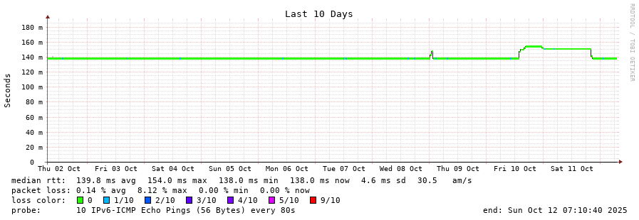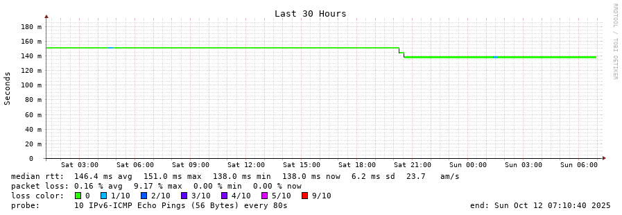 11 > fdff:f000:32:: (fdff:f000:32::) [*] 138.246ms 138.224ms 138.151ms