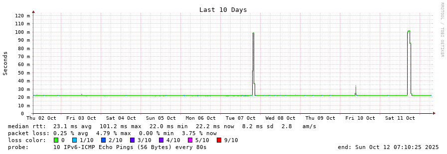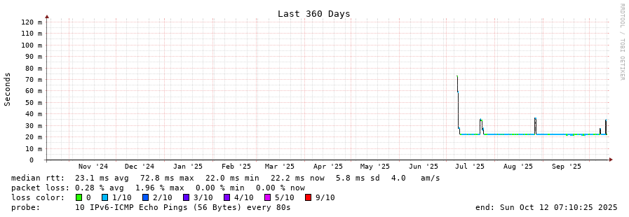 traceroute to 2604:2dc0:202:200::1f9 (2604:2dc0:202:200::1f9), 30 hops max, 80 byte packets - Generated at 2025-10-12 04:45:01