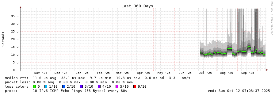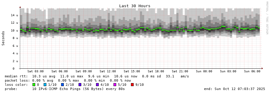 traceroute to 2604:2dc0:301::2:0:376 (2604:2dc0:301::2:0:376), 30 hops max, 80 byte packets - Generated at 2025-10-12 04:45:01 3 > 2604:2dc0:301::2:0:376 (2604:2dc0:301::2:0:376) [AS16276] 0.019ms 0.023ms 0.004ms