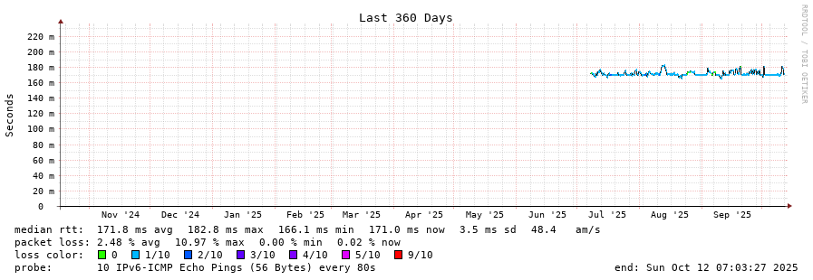 traceroute to 2001:41d0:ab07::2:0:dd (2001:41d0:ab07::2:0:dd), 30 hops max, 80 byte packets - Generated at 2025-10-12 05:00:01