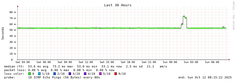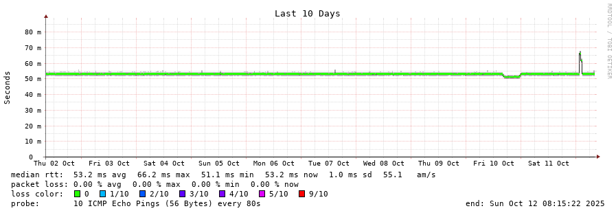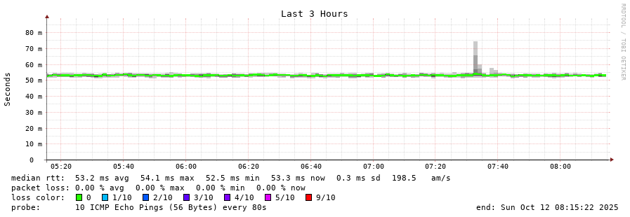 traceroute to 148.113.188.5 (148.113.188.5), 30 hops max, 60 byte packets - Generated at 2025-10-12 05:00:01 3 > 4 > 5 > 6 > 7 > 8 > den-dgeb-sbb1-8k.co.us (148.113.188.5) [AS16276] 52.674ms 52.088ms 53.103ms