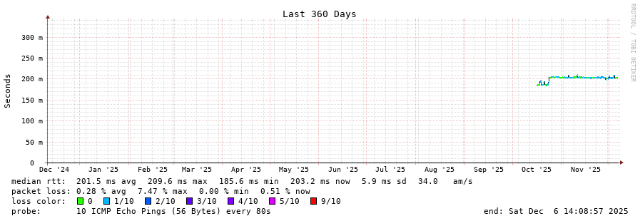 14 > 200.16.69.123 (200.16.69.123) [AS52320] 204.248ms 204.436ms 204.350ms