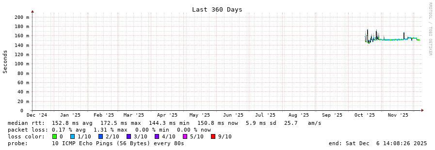 traceroute to 190.24.15.166 (190.24.15.166), 30 hops max, 60 byte packets - Generated at 2025-12-06 14:00:01