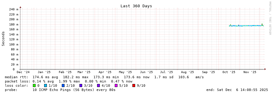 14 > 187.95.49.154 (187.95.49.154) [AS268323] 173.195ms 172.836ms 173.059ms
