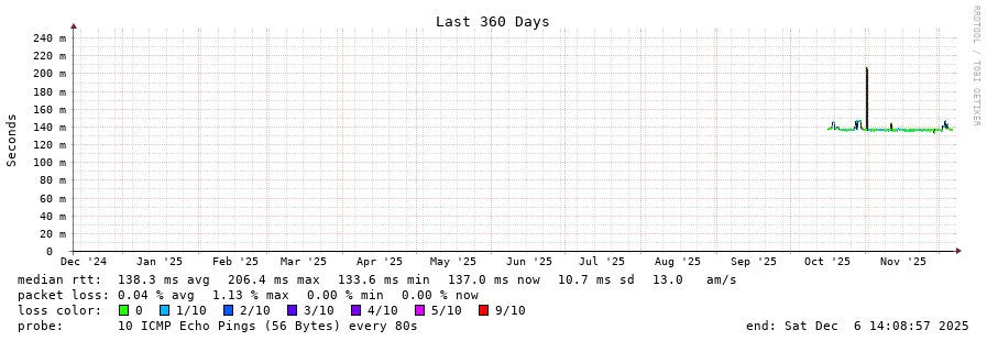traceroute to 130.250.231.199 (130.250.231.199), 30 hops max, 60 byte packets - Generated at 2025-12-06 14:00:01