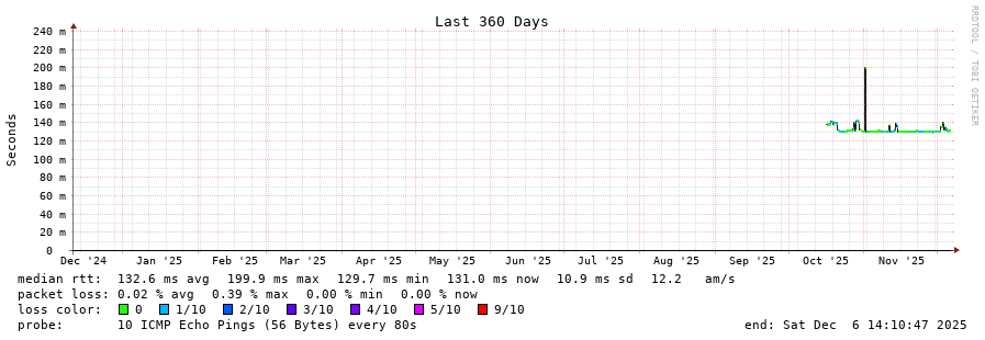 traceroute to 130.250.228.10 (130.250.228.10), 30 hops max, 60 byte packets - Generated at 2025-12-06 14:00:01
