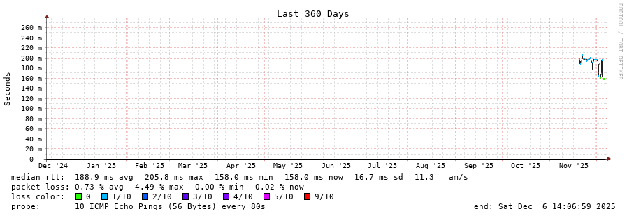traceroute to 179.0.161.81 (179.0.161.81), 30 hops max, 60 byte packets - Generated at 2025-12-06 14:00:01