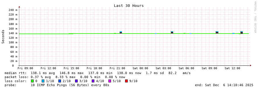 6 > be101.sjo-sv5-sbb1-8k.ca.us (198.27.73.105) [AS16276] 10.900ms 9.867ms 10.432ms