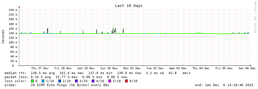 10 > 8.243.120.158 (8.243.120.158) [AS3356] 138.062ms 138.130ms 138.196ms