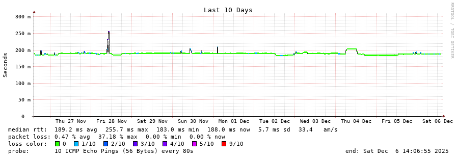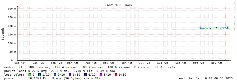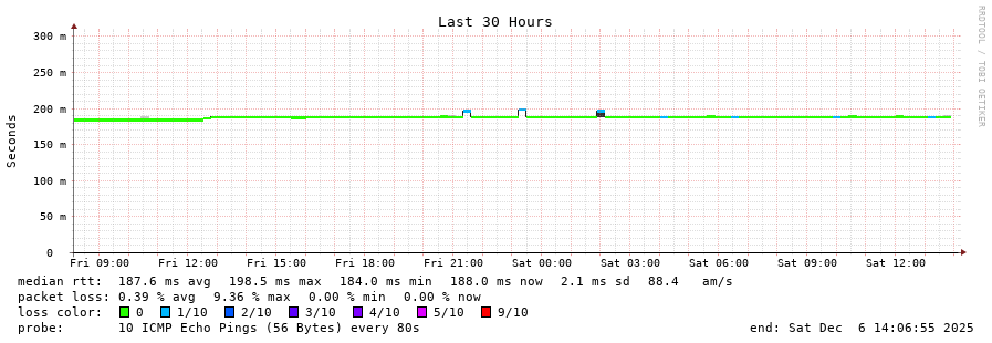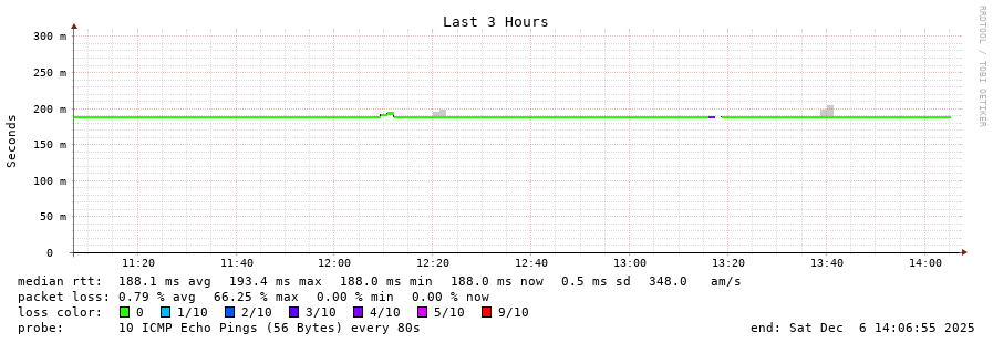 12 > 200.25.57.255 (200.25.57.255) [AS7195] 170.307ms 170.407ms 170.362ms