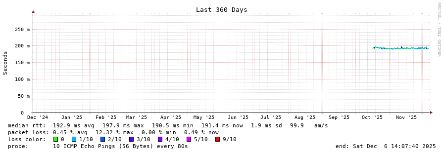 12 > 200.25.57.255 (200.25.57.255) [AS7195] 170.408ms 170.476ms 170.908ms