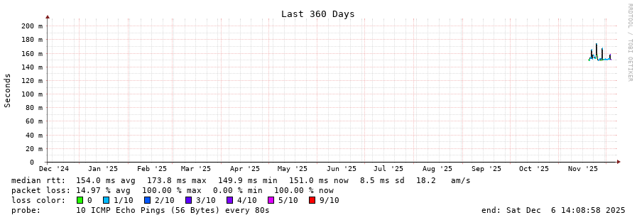 traceroute to 200.95.176.148 (200.95.176.148), 30 hops max, 60 byte packets - Generated at 2025-12-06 14:00:01