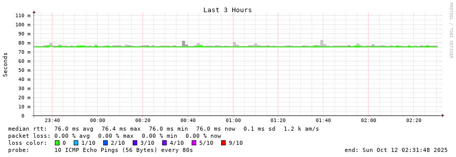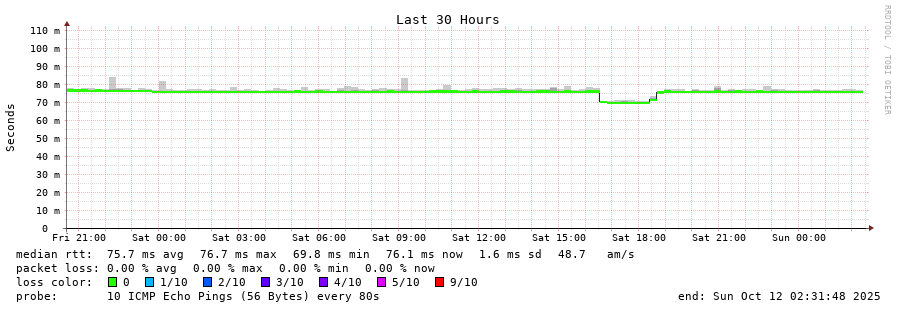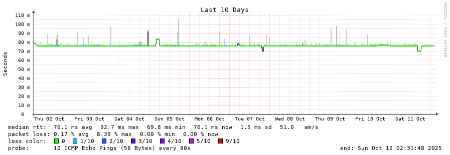 12 > 64.230.79.64 (64.230.79.64) [AS577] 78.996ms 76.792ms 75.689ms