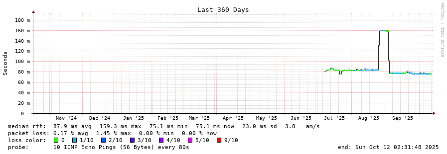 16 > 69.156.254.46 (69.156.254.46) [AS577] 77.944ms 77.955ms 77.937ms