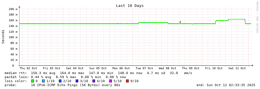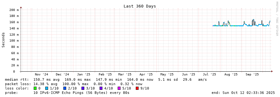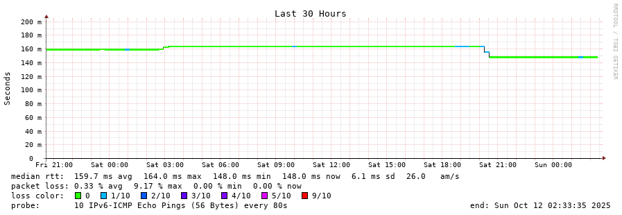 traceroute to 2001:49f0:d0b0:6::2 (2001:49f0:d0b0:6::2), 30 hops max, 80 byte packets - Generated at 2025-10-12 01:45:01