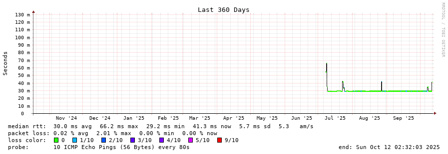 traceroute to 192.30.89.87 (192.30.89.87), 30 hops max, 60 byte packets - Generated at 2025-10-12 01:30:01