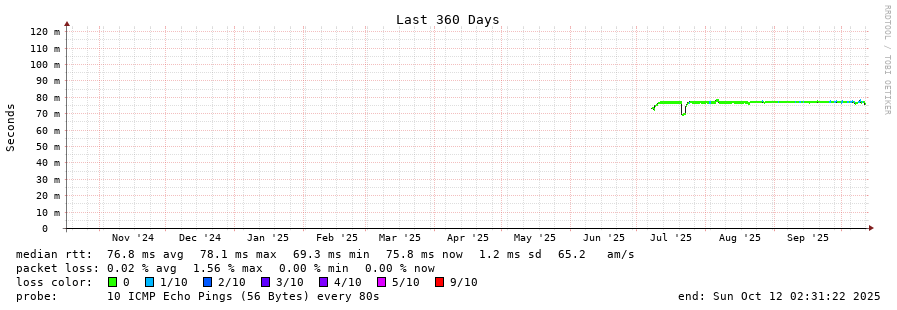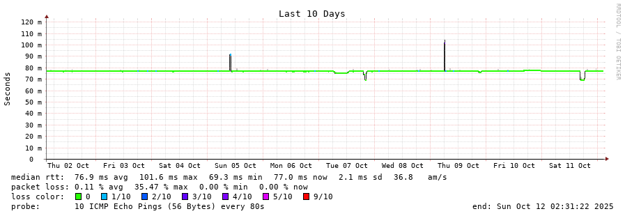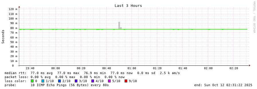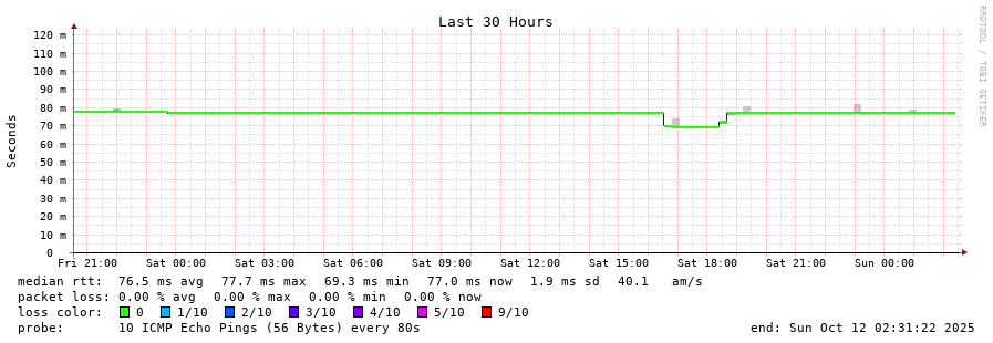 12 > 64.230.79.66 (64.230.79.66) [AS577] 79.182ms 80.748ms 82.591ms